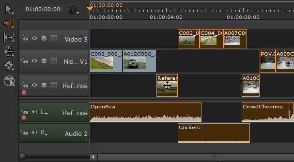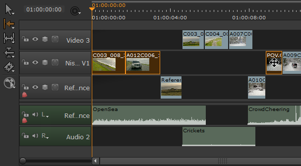 • Select All Tracks RightまたはLeft -ターゲットアイテムの右または左のすべてのショットが、それらが占めるトラックに関係なく選択されます。