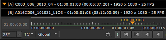 両方のビューア入力にクリップが含まれる場合、オーディオ出力は、クリックして表示されるカラーピッカー情報バーのオレンジ色のマーカーによって設定されます。