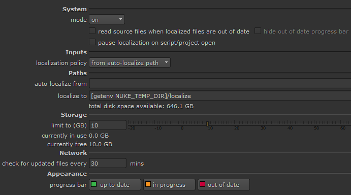 Nuke Studioソースクリップを個別に、または自動的にローカライズされたフォルダー(デフォルトではNUKE_TEMP_DIR / localize)に設定してローカルにキャッシュする機能があり、再生の安定性を保証します。ローカルキャッシュは、最初にPreferencesダイアログ、次にクリップごとに。