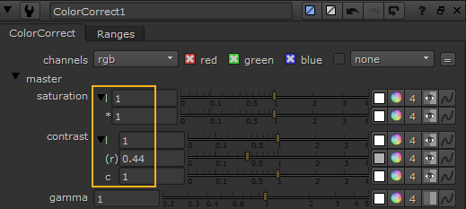 注意: の* (アスタリスク)は、複数の分割されていないビューが残っていることを示しますsaturation制御および( )はrightビューは、 contrastコントロール。