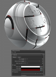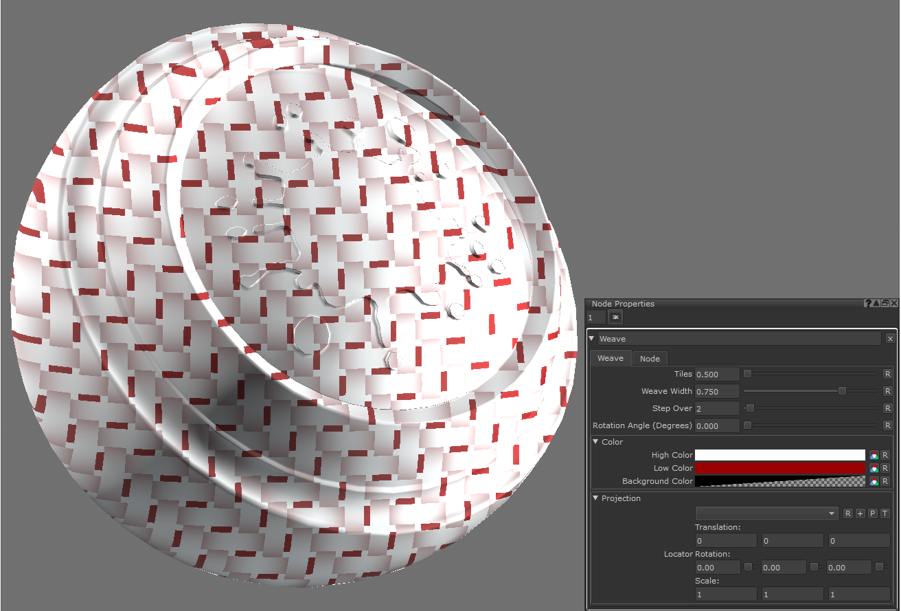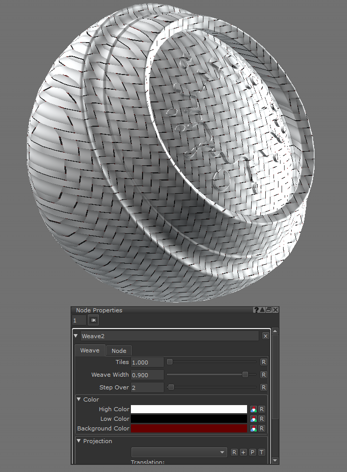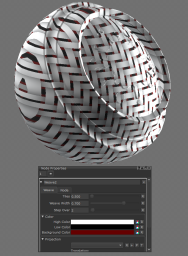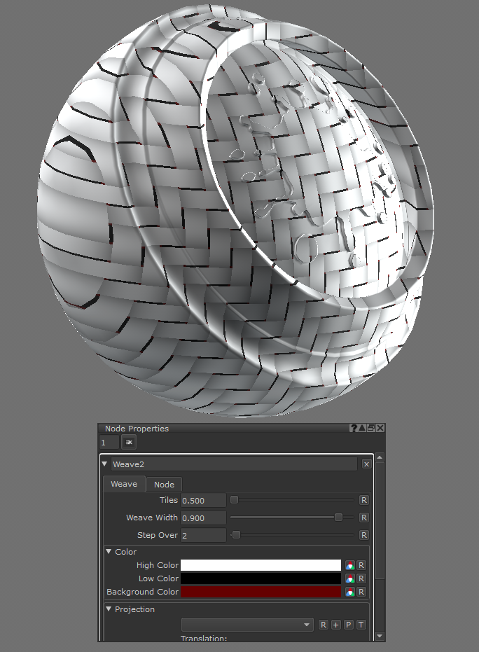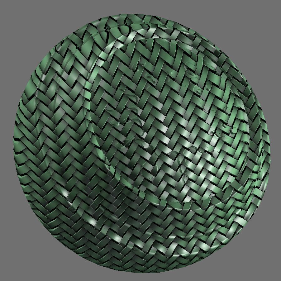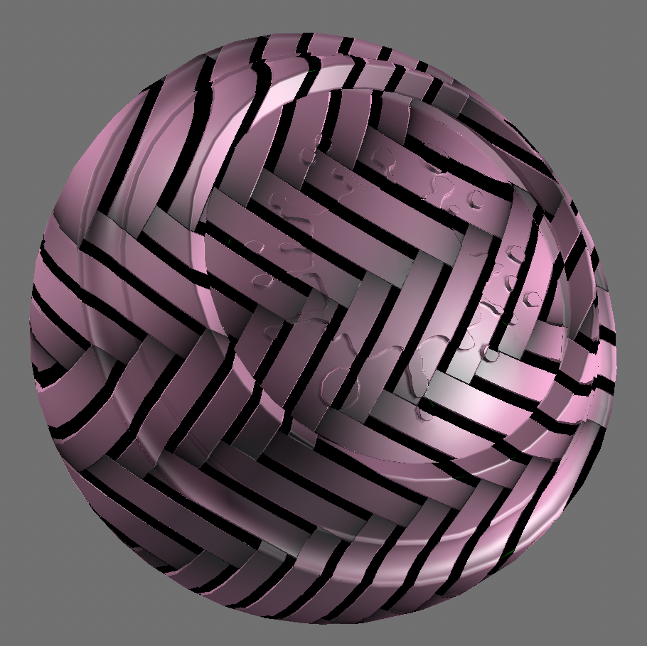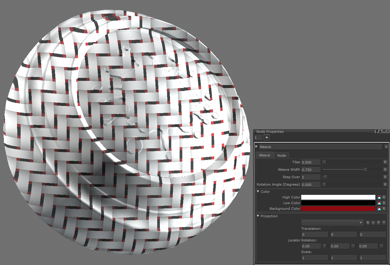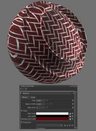このノードは、織り合わされたストリップのパターンを生成します。これは、高さマップ、マスク、またはその両方として使用して、織物素材でオブジェクトをテクスチャリングできます。