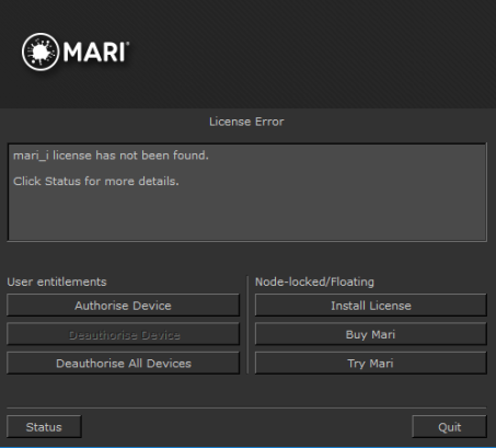 試してみたいだけならMari、実行できるトライアルライセンスを取得できます。 Mari 15日間無料でご利用いただけます。見るライセンスをインストールする。