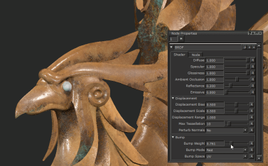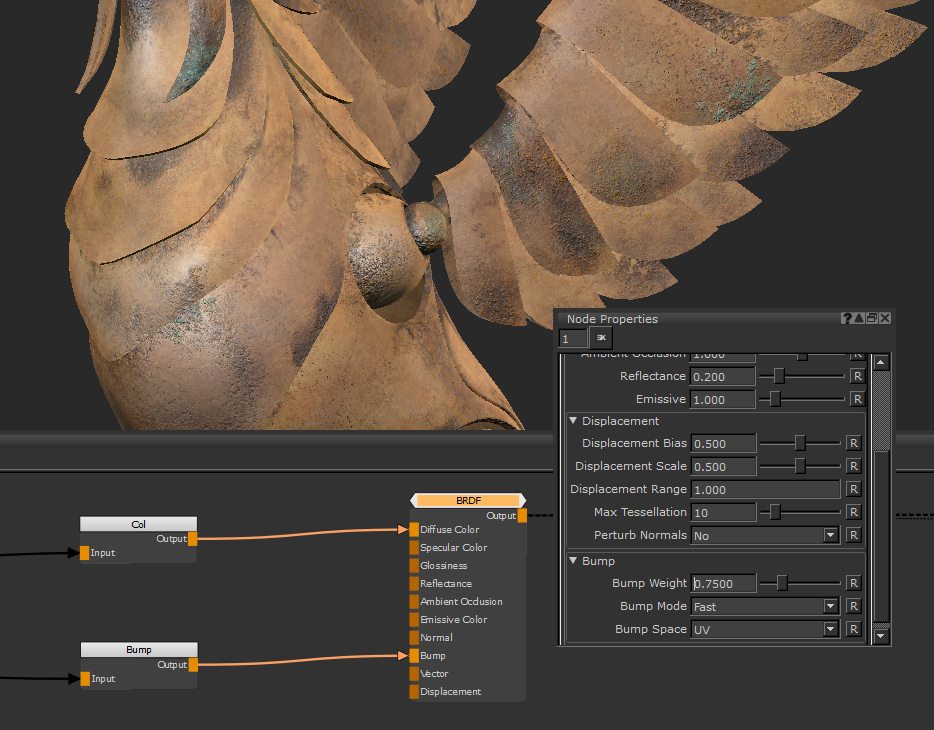ノードのシェーダーネットワークバージョンには、ノードのグループ内で設定されたいくつかの追加プロパティが含まれています。これらはBump、 VectorそしてDisplacementシェーダーに追加できる入力。