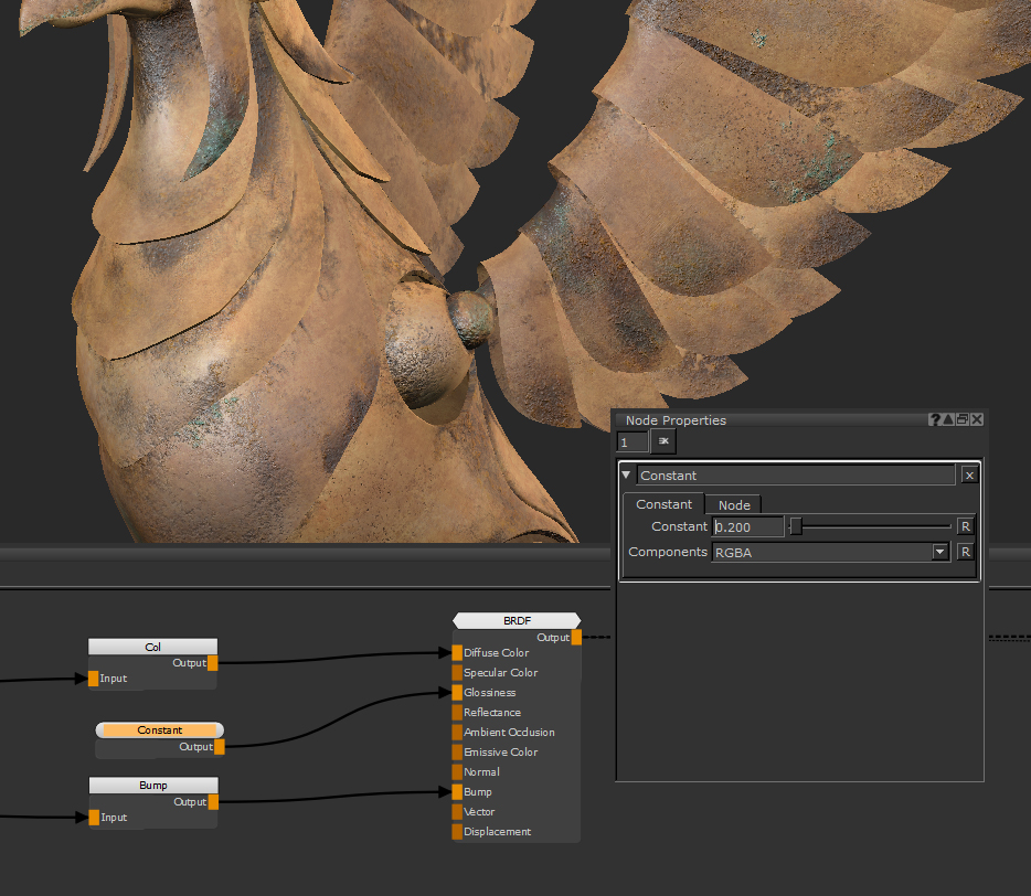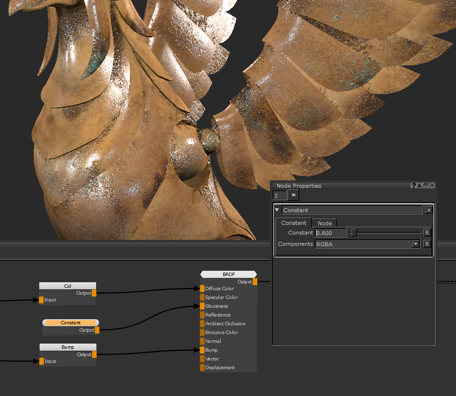 に接続された定数ノードを使用できますGlossiness。これは、ラフネスマップのペイントを開始するための値を見つけるために使用できる0と1の間の値です。