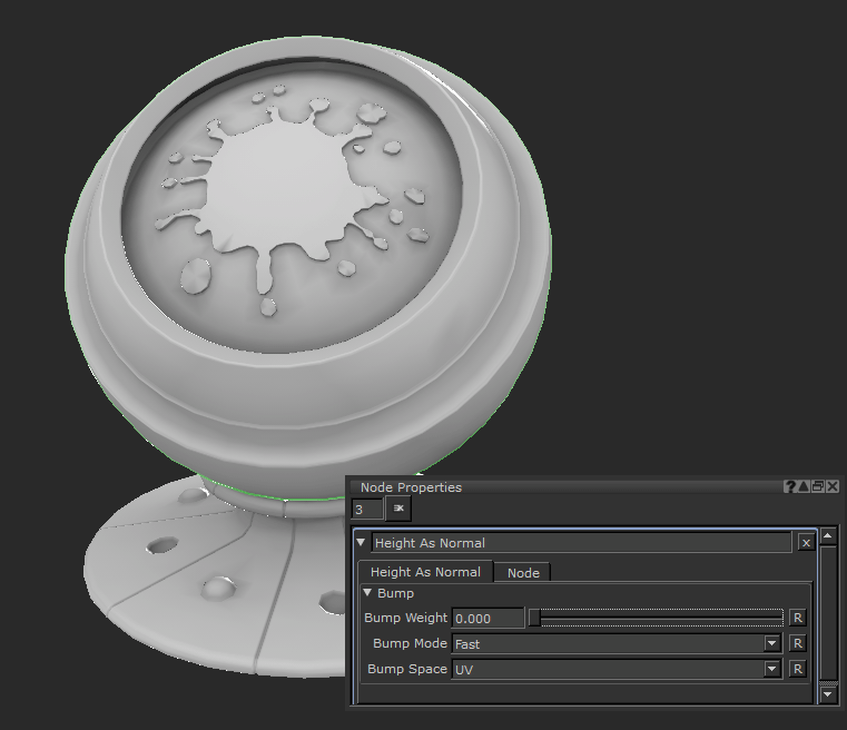 のHeight As Normalノードは、グレースケールテクスチャを法線マップに変換するために使用されます。ノードにはHeight入力するため、正しくバランスの取れたバンプチャネルを接続するのが最適です。のHeight As Normalノードは、0.5を超える値をバンプとして解釈し、0.5未満の値を谷として解釈します。