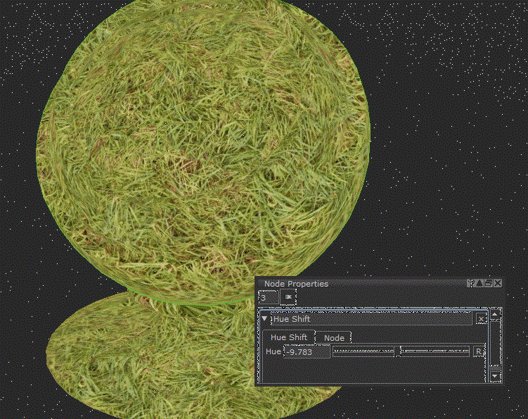 これは、上にテクスチャの詳細を追加するための良いベースです。草のタイル画像がある場合は、 Hue Shiftノードを茶色にすると、非常にすばやく砂漠の草のバリエーションができます。