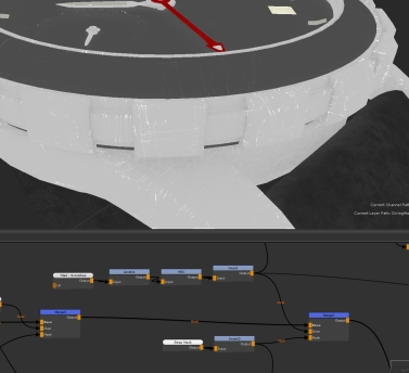 その上、 Paintノードが呼び出されましたStrap Mask引っかき傷がストラップに影響を与えず、時計面の金属にのみ影響を与えるように反転しています。これは、 Invertノード-他の用途のためにすでにペイントしたフリッピングマスク。