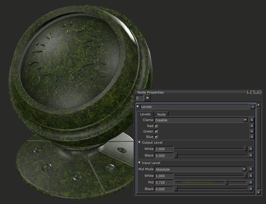 これは、 Levelsテクスチャの一部に編集を追加するノード。複数使用できますLevelsテクスチャに一連の変更を加え、1つのマップを別のマップとして使用するように変更します。以下の画像はプロセスを分類したものです: