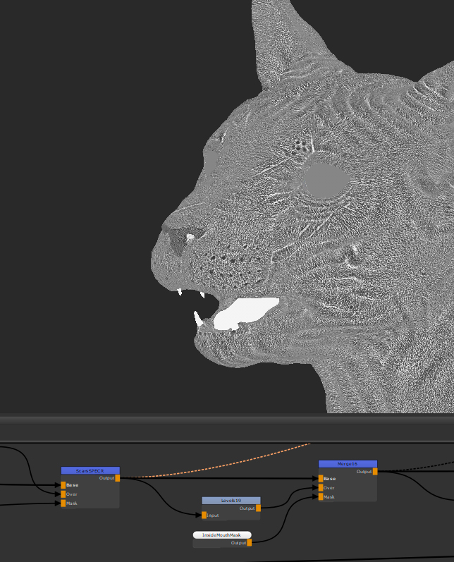 上の画像を見るとわかるように、 Levelsノードを使用して口の内側を暗くし、鏡面反射をよりタイトにします。