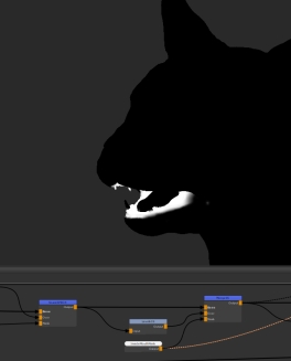 また、これをメッシュのどの部分にするかを定義する必要があります。 Levelsノードに影響します。次に、口の内側のマスクをMergeそのエリアのみを暗くするノード: