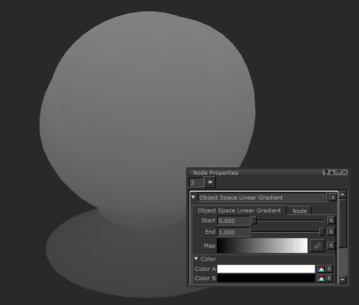 グラデーションの終点のワールドスペースの位置を変更します。1はメッシュの寸法の端です。値を小さくすると、開始点がメッシュに沿ってさらに移動します。スライダーの最大値は1ですが、数値を大きく入力して、スライダーをさらに遠ざけ、グラデーションを引き伸ばすことができます。