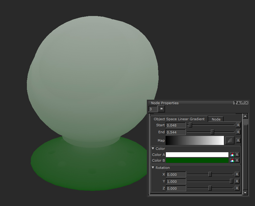 のObject Space Linear Gradientノードは、メッシュの下部だけをマスクする優れた方法です。たとえば、ベースの周りに泥を追加したり、滑らかなグラデーションを自分でペイントすることなくメッシュの色を変更したりできます。