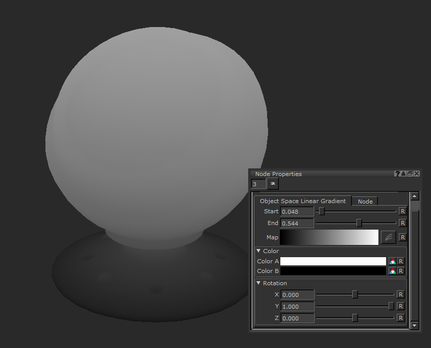 ノードには、結果を変更するための多くのオプションがあり、オブジェクトのワールドスペースに基づいてクイックマスクを作成するのに最適です。プロパティを編集することで、より緩いまたはよりタイトなグラデーションを作成でき、提供されているランプオプションを使用して、出力に忠実度のレベルを追加できます。