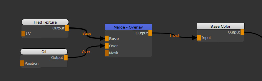 とプレーンな質感Oil上部にマージされたノード、ブレンドモードに設定Overlay。