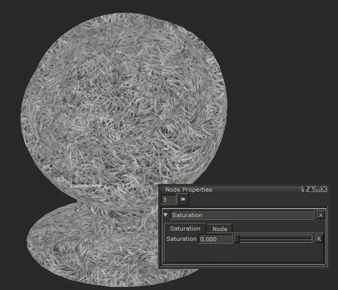 のSaturationノードは、彩度が多すぎる、または少なすぎるためにテクスチャと完全に一致しない画像をインポートした場合に便利なノードです。また、カラーデータのある画像からマスキング用の白黒画像を作成するためにも使用できます。