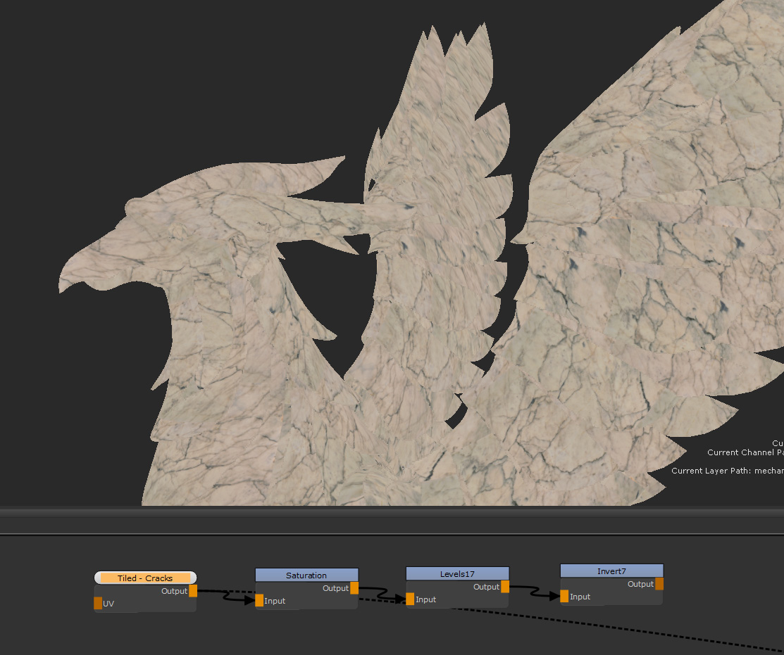 次に、 Invertクラックをマスクとして使用する場合は、ノードを使用できます。この画像は、何にでも使用できるようになりました。別のノードセットのマスクとして使用したり、テクスチャの上に直接マージしたりできます。