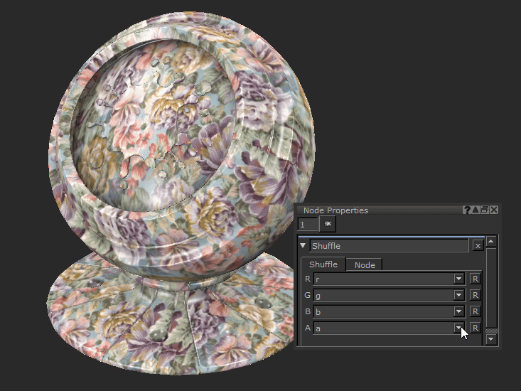 のShuffleノードは、テクスチャの異なるカラーチャネルを他のカラーチャネルに再配置できるノードです。