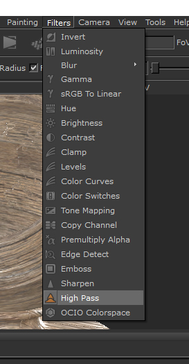 最後に、バンプマップを作成するには、 High PassウッドテクスチャをフィルターしますImage Managerそこから簡単に高さマップを取得します。確認してくださいAmountバンプマップのように中間点として中間灰色の画像を取得するには、0.5のままにします。