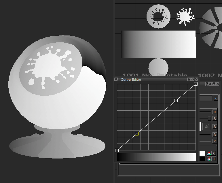 カーブエディタアイコンをクリックすると、グラデーションが0から1の直線的なランプではなく、グラデーションのカーブを変更できます。