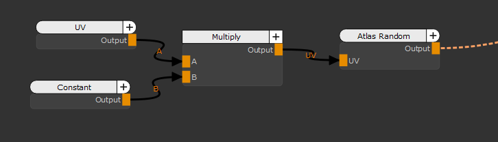 のConstantノードは、 UVによって使用されるUVのスケールを設定するノードAtlas Randomノード。この設定を使用して、アトラステクスチャをAtlas Texture、次の効果を作成します。