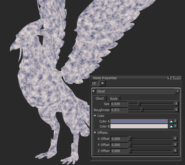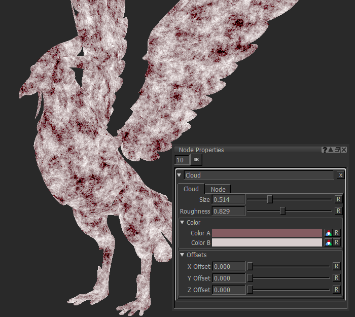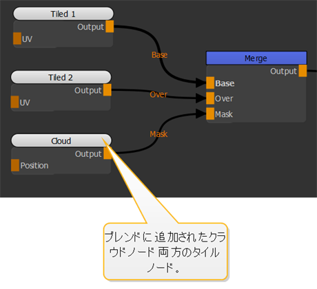 テクスチャー1とテクスチャー2の両方が、 Cloudマスクとして適用されたノード。