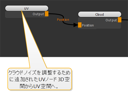 この例では、UVノードを使用してCloud 3D空間からUV空間へのノイズ。