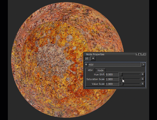 Input -変更が必要なテクスチャまたはペイントを含むノードは、TiledノードやPaintノードなどのHSVノードに接続できます。