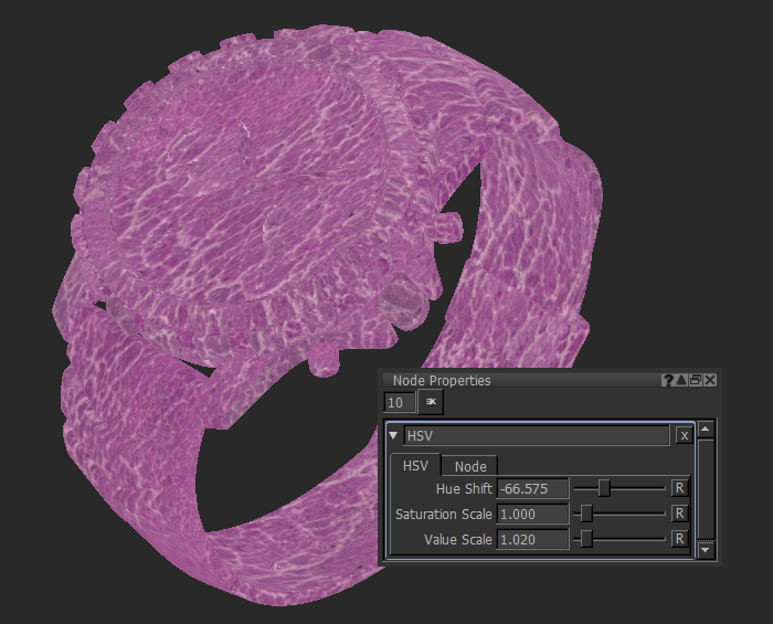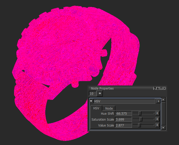 注意: HSVノードは、 HUEフィルタ。HSVノードとは異なり、 HUEフィルターは破壊的です。見る利用可能なフィルター詳細については。
