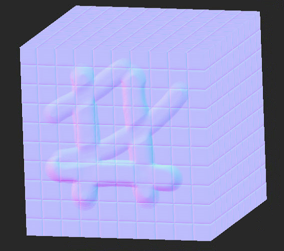 Nudge Normal Vectors 変更しますOver接線ベクトル空間に。z値が3D空間で外側を向くようにし、ベクトルがモデルの任意の場所でオブジェクトの表面から外を向くようにします。のNudge Normal Vectorsモードは、ブレンド結果を取得するためにベクトルを一緒に追加し、法線マップでの使用に最適です。 |