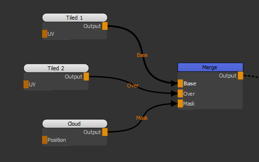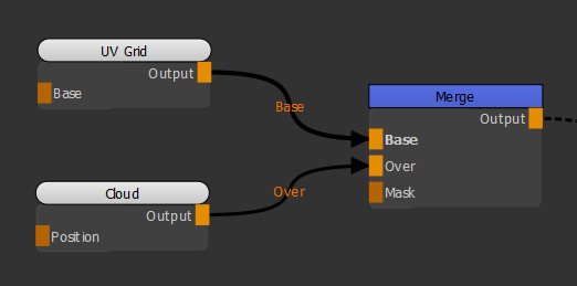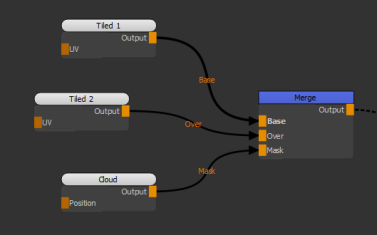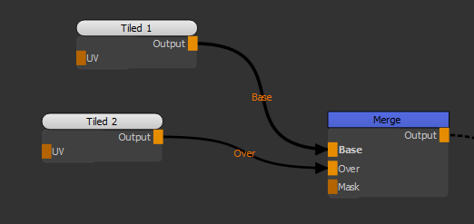 • Over -テクスチャまたはペイントを含むノード、およびプロシージャノードは、 MergeノードのOver入力。