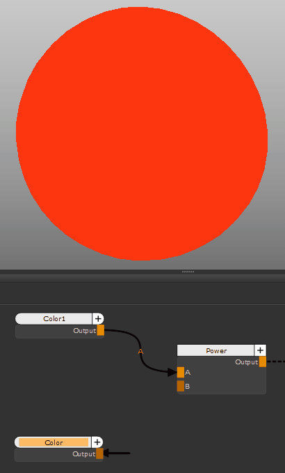 のPowerノードはの値を出力しますA力に引き上げB。これは、指数に応じて、ベースカラー値を上げて暗くしたり明るくしたりするのに役立ちます。