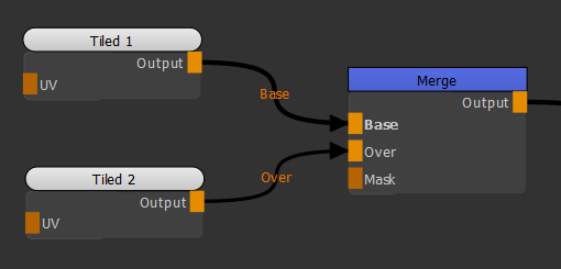 | 1. | 2つ作成Tiledノードに接続し、 BaseそしてOverの入力Mergeノード。 |