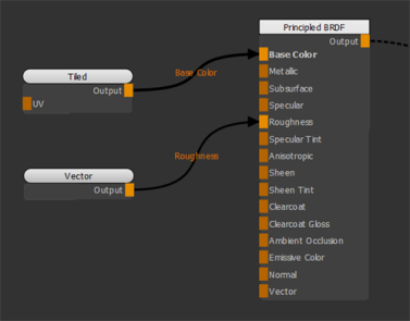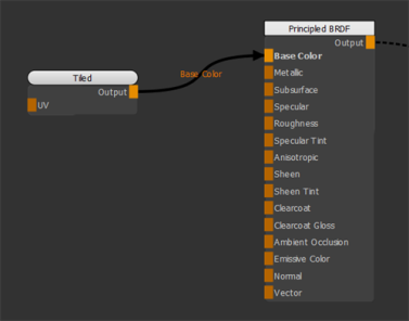| 1. | を作成するTiledノードとPrincipled BRDFノード。接続しますTiledへのノードBase Colorの入力Principled BRDFシェーダー。 |