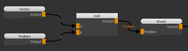 | 2. | を作成するAddノードに接続し、 Positionの入力Woodノード。を作成するVectorとPositionノードに接続し、それぞれにAそしてBの入力Addノード。 |