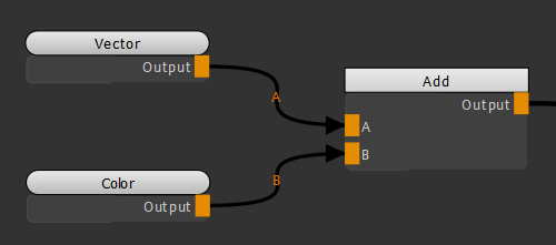 | 3. | を作成するAddノード。を作成するVectorノードと接続VectorノードとColorそれぞれにノードAそしてBの入力Addノード。 |