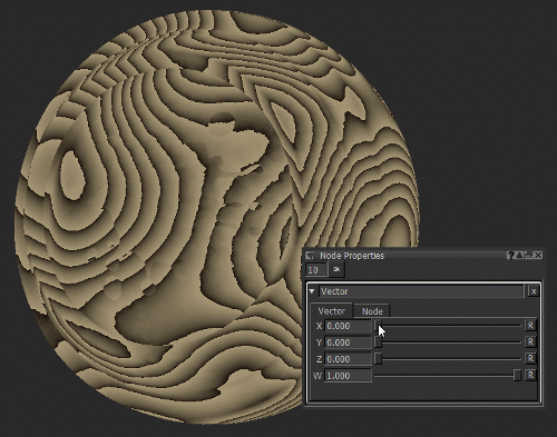 フードの下、 Mari 2つのノード間の接続に沿って4つの数値のセットの周りを渡します。のVectorノードは、4つの数値(x、y、z、およびw)のセットとしてのみ使用されます。あなたは使うことができますVectorワークフローに応じて、ほぼすべてのノードと組み合わせたノード。たとえば、位置や色の情報を調整するために使用したり、シェーディングノードなどの別のノードの値を変更するための数値として使用したりできます。