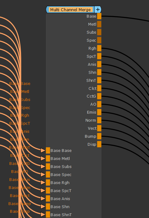 ストリームが折りたたまれたマルチチャネルノードは、ノードグラフで最小限の最適化された容量を使用し、並列ストリーム接続を単一の接続にグループ化します。背の高いマルチチャンネルノードの視覚的な混乱を減らすことで、マテリアル主導のプロジェクトをより効率的にナビゲートできます。見るノードの操作。