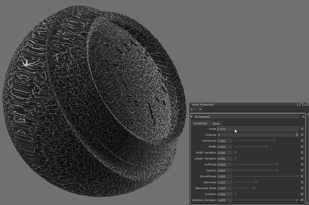 プロシージャ効果がスカラーまたはカラーデータに使用されるコンテキストを設定します。デフォルトでは、 Mariチャネルのカラーデータタイプを検出し、 Layersパレット。ノードグラフで作成された手続き型ノードの場合、このカラー/スカラー切り替えはデフォルトでカラーになります。マスクおよびスカラーチャネル内で使用される手続き型ノードは、手動でスカラーに設定する必要があります。見るカラーデータとスカラーデータ詳細については。