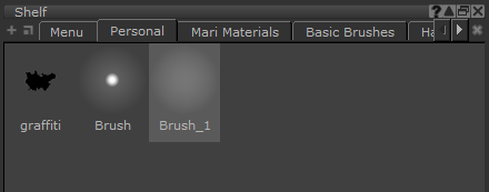 | 5. | カスタマイズしたブラシをMariの上部ツールバーShelfブラシを保存するパレットの棚。 |