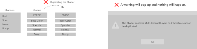 上流のマルチチャンネルレイヤーを持つシェーダーは複製できません。