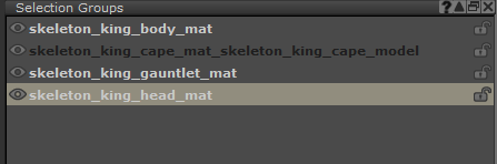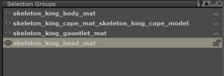 選択グループ名は、灰色のフォントで表示されます。 Selection Groupsパレット。灰色のフォントは、モデルに選択グループを表示できることを示しています。選択したオブジェクトバージョンに含まれる選択グループがモデルに表示されます。