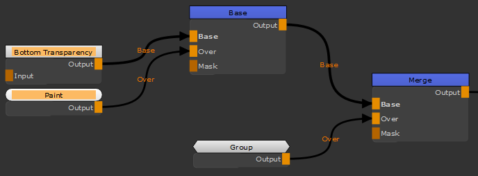 必要な数の入力パイプと1つの出力パイプを持つグループノードが追加されます。たとえば、グループ内のノードに接続されている3つのノードがある場合、 Mari Groupノードの3つの入力を作成します。
