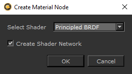 •必要なユーザーシェーダーをShadersたとえば、パレットPrincipled BRDF。