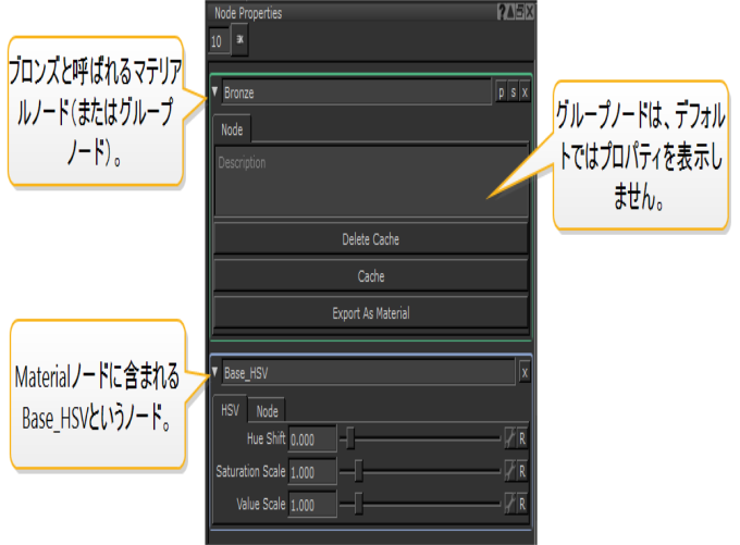 素材Node Propertiesパネル。