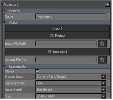 • のShader Used デフォルトはCurrent Paint Target、ただしこれを変更して、投影解除するシェーダーを決定できます。