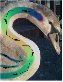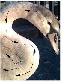 矢印は、白鳥の体上の羽の方向を示します。ベクトルはこれを模倣する必要があります。 |