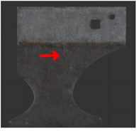 • パッチのエッジ周辺の「オーバーペイント」の痕跡。
