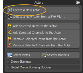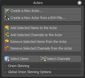• Select Channels -アクターのすべてのアイテムに関連するすべてのアニメーションチャネルを選択します。