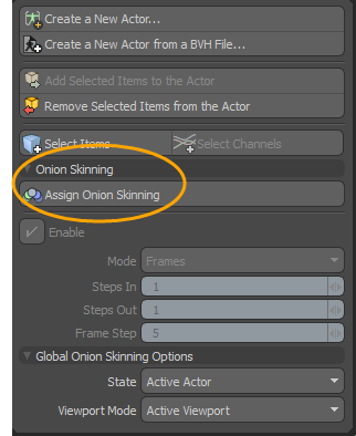 | 2. | クリックしてActorsボタン、展開Onion SkinningそしてクリックAssign Onion Skinning。 |