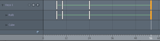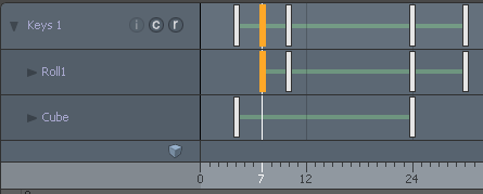 | 8. | 最初のキーをクリックしてドラッグし、 Roll1アイテムを再配置する7秒。 |